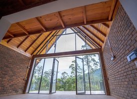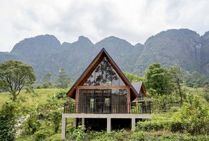 Modern cabanas embraced by the serene beauty of a lush tea estate